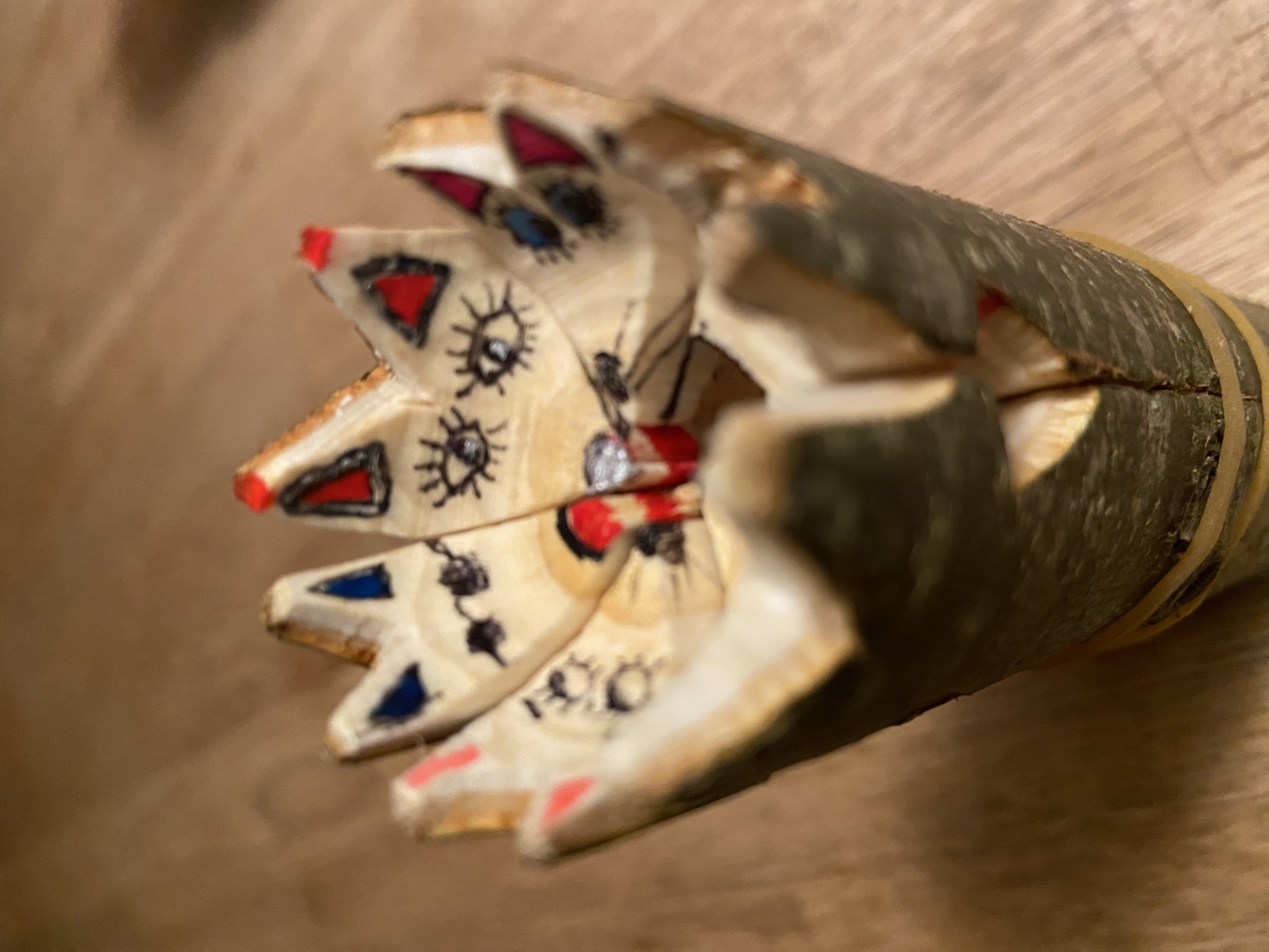 Eleverne når måske ikke at blive færdig med deres valgte emner, måske skal der snittes lidt mere...men der skal ihvertfald slibes en masse på skæftet. Vi arbejder i frisk træ og det er ikke nemt at slibe med sandpapir, så der vil være ekstra arbejde. Så det vil være oplagt at sætte tid af til færdiggørelse af emnerne.